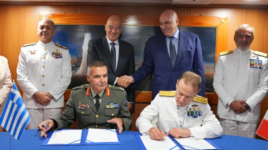 وقد تم توقيع الاتفاقية بحضور وزير الدفاع الإيطالي، غويدو كروسيتو، ونظيره اليوناني نيكوس ديندياس، ورئيس هيئة الأركان البحرية الإيطالية، الأدميرال إنريكو كريديندينو، وغيرهم من المسؤولين.