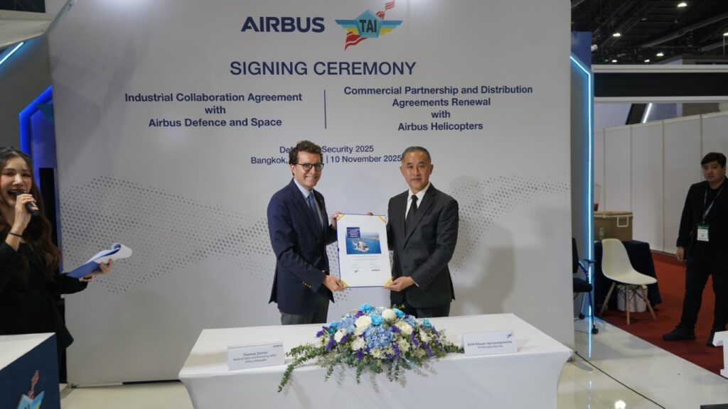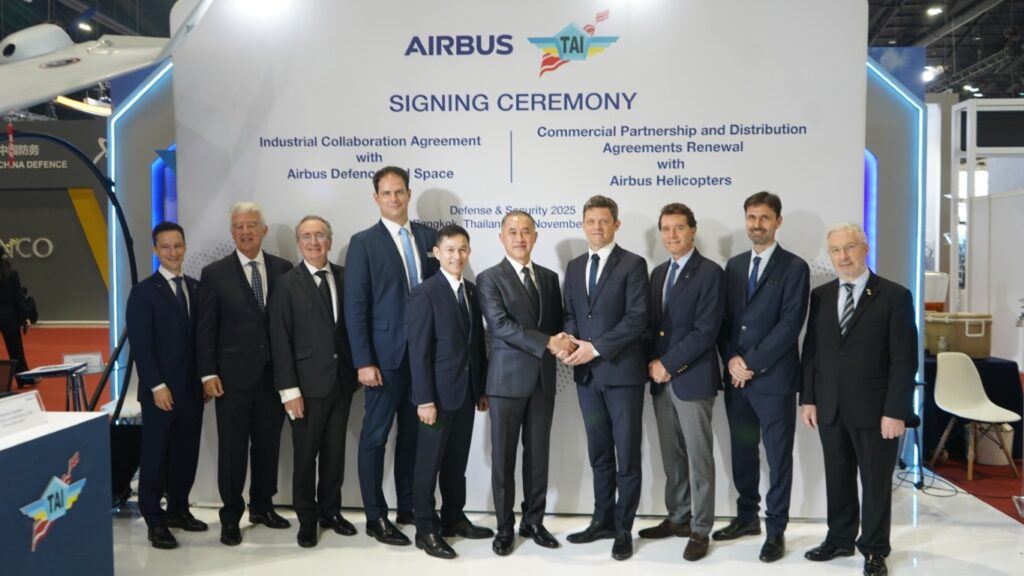 وسّعت شركة “إيرباص” نطاق تعاونها الصناعي مع شركة “تايلاند للصناعات الجوية” (TAI) من خلال إبرام اتفاقية تعاون صناعي في مجال الدفاع، وتجديد اتفاقيات الشراكة التجارية والتوزيع التجاري التي تغطي أنشطة الطائرات المروحية.