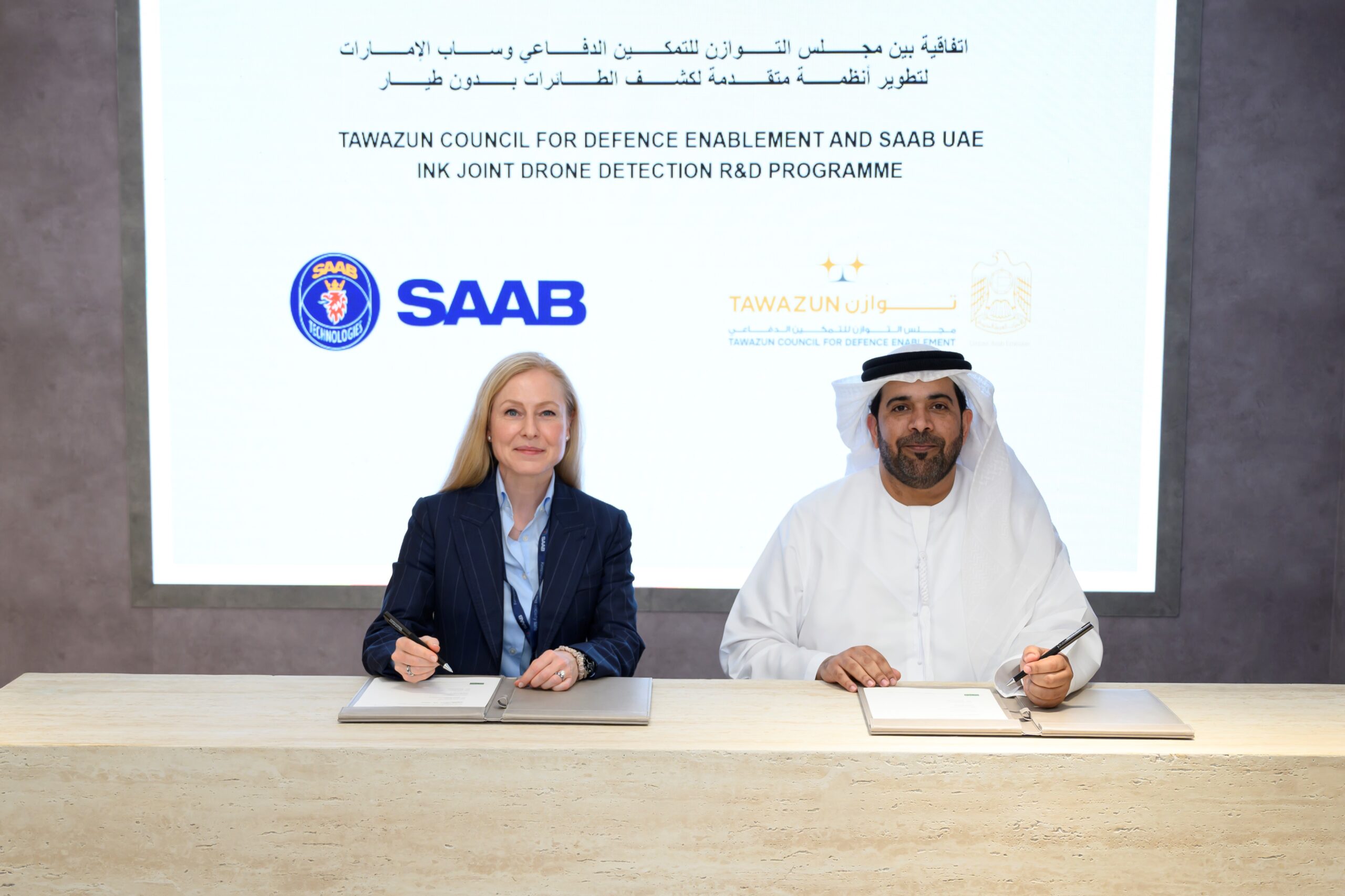 أعلن مجلس التوازن للتمكين الدفاعي “توازن” وشركة ساب الإمارات عن توقيع اتفاقية لإقامة برنامج مشترك للبحث والتطوير يهدف إلى تطوير تقنيات متقدمة لكشف الطائرات بدون طيار.