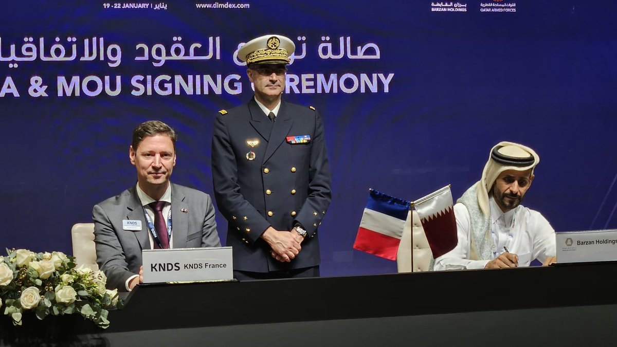 وقعت شركة برزان القابضة القطرية، الرائدة في قطاع الدفاع والأمن، خطاب نوايا مع شركة “كيه إن دي إس” الفرنسية (KNDS France)، وذلك على هامش فعاليات معرض ومؤتمر الدوحة الدولي للدفاع البحري “ديمدكس 2026” في الدوحة.